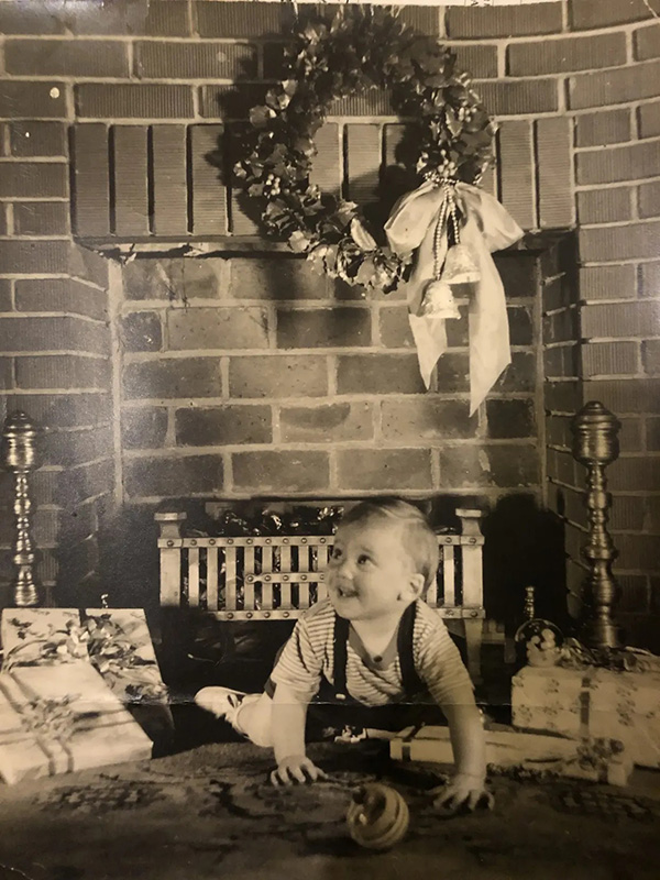 Our Patriarch, Gary Norris, plays by the fireplace as a baby, a sign of things to come!